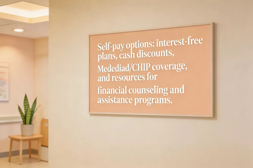 Accepted payment methods and self‑pay options The practice accepts major credit cards (Visa, Mastercard, Discover, American Express), cash, money orders, and cashier’s checks. For families without insurance, detailed cost estimates are provided before services, and discounted cash rates or interest‑free payment plans may be arranged. Financial counseling is available at (850) 784‑2992 to assist with insurance verification, out‑of‑pocket budgeting, and assistance programs.