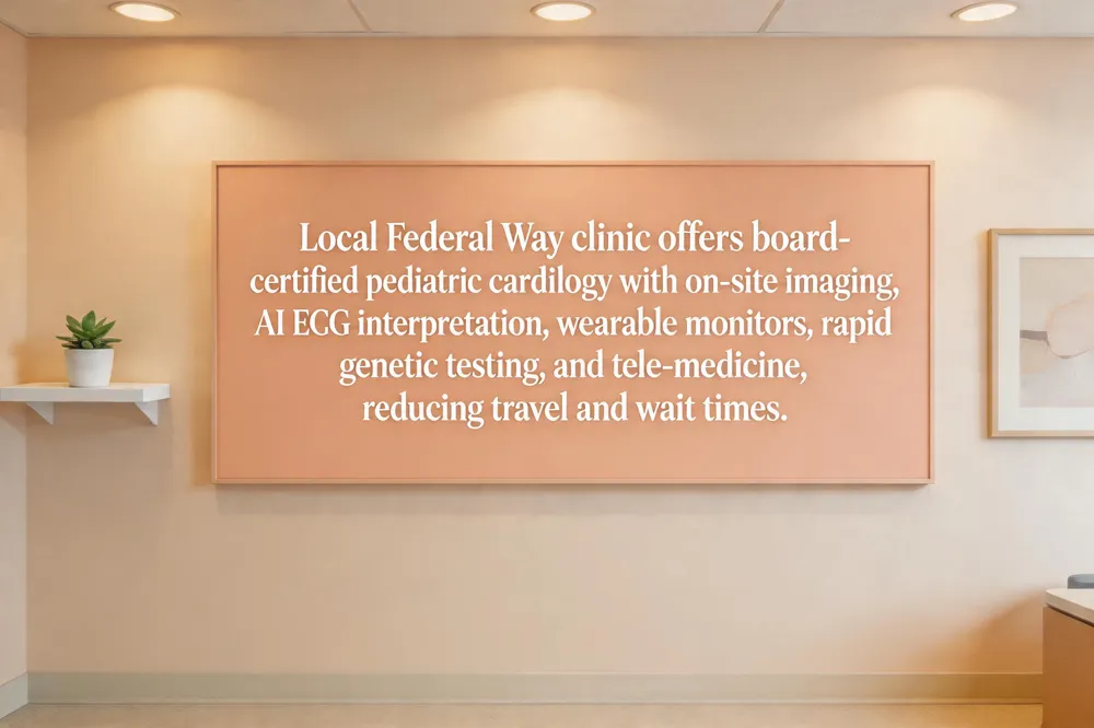 Our clinic, located at 123 4th Ave South, Federal Way, offers board‑certified pediatric cardiologists who provide comprehensive heart‑health services for infants, children, and adolescents. Families benefit from on‑site point‑of‑care ultrasound, AI‑assisted ECG interpretation, wearable cardiac monitors, and rapid genetic testing—all under one roof, with convenient parking and flexible scheduling.