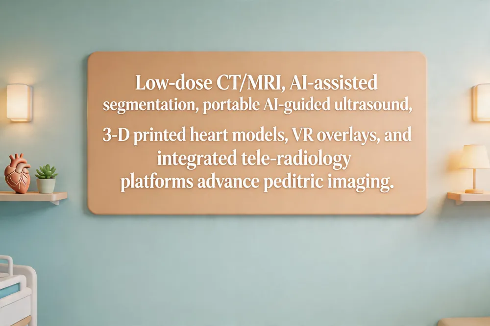 Low‑dose CT and MRI now use ultra‑fast, motion‑corrected sequences and pediatric‑specific protocols that cut radiation by up to 40 % while preserving image quality. AI‑assisted tools automatically segment chambers, flag subtle congenital defects, and link imaging features to genetic data for personalized care. Portable point‑of‑care ultrasound devices equipped with AI‑guided acquisition let pediatricians obtain high‑resolution cardiac images in the exam room, reducing referrals and exposure to radiation. Looking ahead, 3‑D printed heart models and virtual‑reality overlays will aid surgical planning, while integrated tele‑radiology platforms will bring expert interpretation to remote clinics.