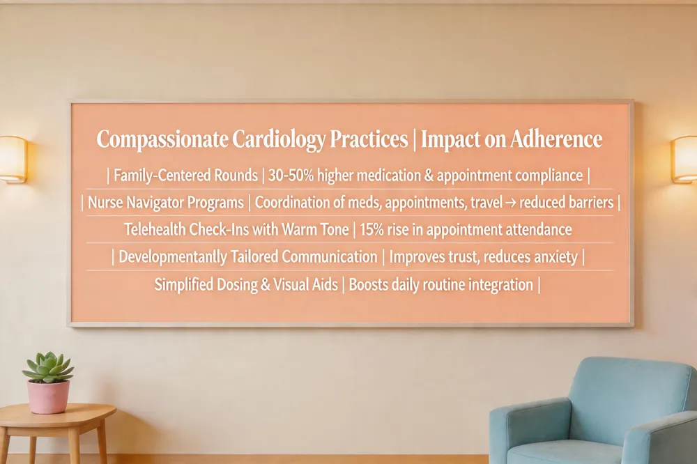 Compassionate, family‑centered communication is a proven driver of medication and follow‑up adherence in children with chronic heart conditions. When clinicians listen actively, validate concerns, and tailor explanations to a child’s developmental level, families feel trusted and motivated, resulting in 30‑50 % higher rates of medication compliance and appointment attendance.
