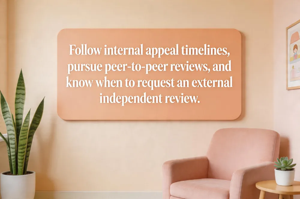 If the internal appeal is denied, you may request an external review. Federal law (ACA) requires insurers to provide a written explanation and a deadline—typically 30 days for internal appeals and up to 180 days for external reviews. In urgent cases, an expedited review must be decided within 72 hours. Should all review levels be exhausted, you can file a complaint with your state Department of Insurance or consult a health‑care attorney for further legal options.