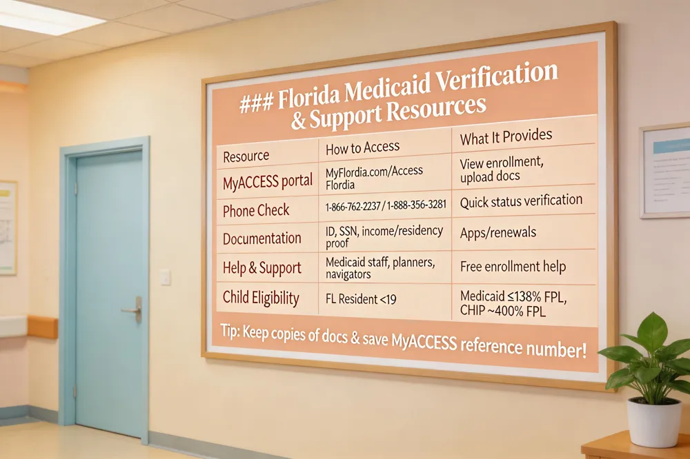 How do I check my Medicaid status in Florida? Log in to the MyACCESS portal (MyFlorida.com/AccessFlorida) with your username and password to view enrollment status, eligibility dates, and required documents. If you lack an account, you can create one online or call the 24‑hour Medicaid Customer Service line at 1‑866‑762‑2237 for a status update. A quick automated check is also available by dialing 1‑888‑356‑3281. For personalized help, visit a local Department of Children and Families office or use the online “Contact Us” form.