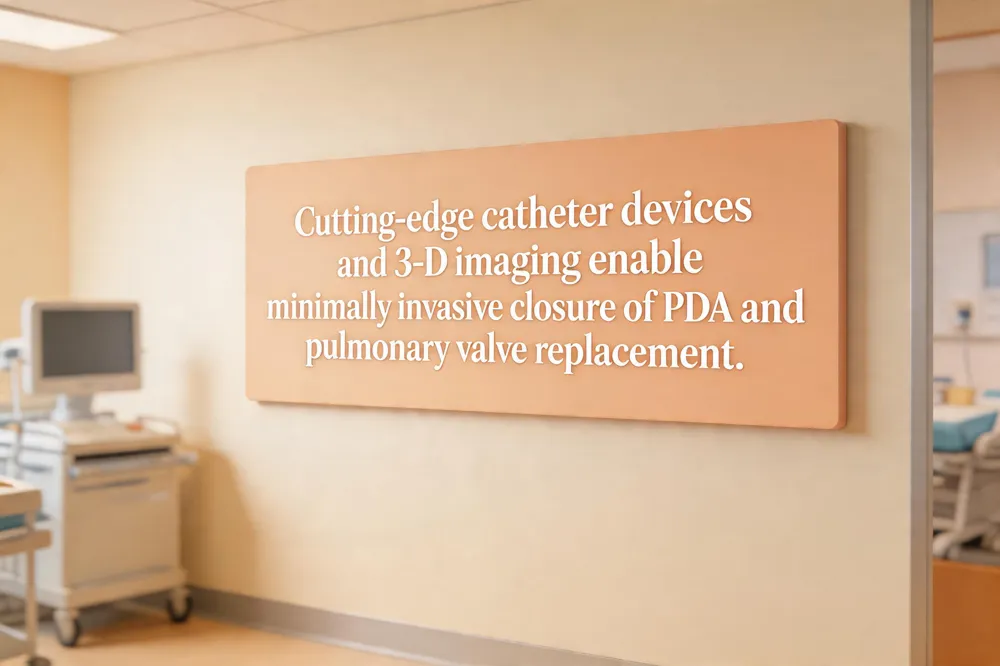 Minimally invasive options let children avoid open‑chest surgery. The Amplatzer Piccolo™ occluder FDA‑cleared for infants as small as 700 g, can be placed bedside in the NICU via a femoral vein catheter, closing patent ductus arteriosus quickly and shortening ventilator time. For children with pulmonary regurgitation, the Harmony™ transcatheter pulmonary valve offers a percutaneous alternative, allowing discharge after one night.