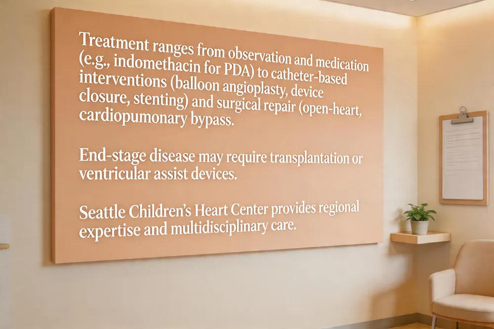 Regular well‑child visits are the foundation of early heart‑health detection. During each appointment, ask your pediatrician whether a pulse‑oximetry screen or cardiac exam is appropriate—these quick, non‑invasive tests can reveal low oxygen levels or abnormal heart sounds that may indicate a congenital heart defect. If a murmur, cyanosis, poor feeding, or excessive sweating during feeds is noted, request a prompt referral to a pediatric cardiology clinic in Federal Way. Our regional centers offer same‑day echocardiograms, ECGs, and specialist consultations, ensuring timely diagnosis and a clear treatment plan. Early, family‑centered evaluation helps safeguard your child’s growth, development, and long‑term heart health.