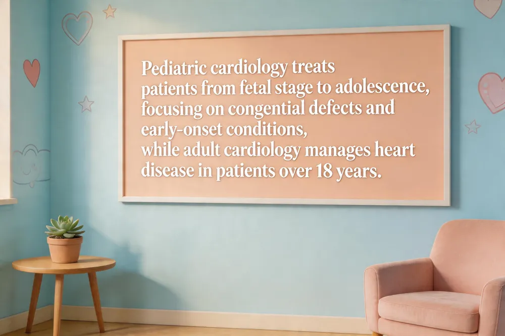 Pediatric cardiology focuses on patients from the fetal stage through adolescence, whereas adult cardiology treats individuals typically older than 18 years. Children’s hearts are still growing, so Board‑certified pediatric cardiologists manage a distinct spectrum of disease—including congenital heart defects, early‑onset cardiomyopathies, arrhythmias, and pediatric hypertension—while adult cardiologists address coronary artery disease, age‑related valve disorders, and hypertension‑driven complications.