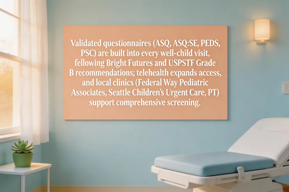 Economic stress, limited childcare, and caregiver mental health can impede social‑emotional growth. Pediatricians connect families to Washington’s Early Childhood Services (ECAS) program, Medicaid‑covered developmental screenings, and local support groups such as Kids First at the Federal Way Public Library. Partnerships with early‑intervention centers and parent‑training workshops ensure that low‑income families receive needed resources.