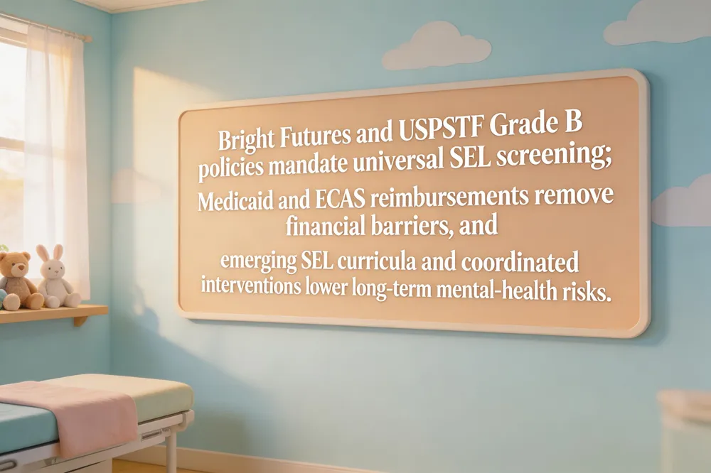 The American Academy of Pediatrics’ Bright Futures initiative, together with the U.S. Preventive Services Task Force’s Grade B recommendation for developmental and behavioral screening, mandates universal social‑emotional assessment at well‑child visits. In Washington State, Medicaid reimburses these screenings and the ECAS (Early Childhood Services) program offers low‑cost developmental evaluations, ensuring families can access early‑intervention resources without financial barriers. Emerging research links SEL (Social and Emotional Learning) curricula to measurable gains in self‑regulation, empathy, and academic readiness, while early‑intervention models—such as parent‑training programs (Incredible Years, Triple P) and coordinated pediatric‑cardiology psychosocial care—show reduced rates of anxiety, depression, and school‑age behavioral disorders. Together, these policy frameworks and evidence‑based interventions create a supportive infrastructure that empowers pediatricians, families, and community partners to foster resilient, emotionally healthy children.