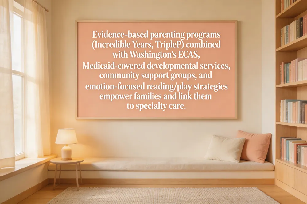 Pediatricians in Federal Way routinely recommend the Incredible Years and Triple P (Positive Parenting Program). Both curricula teach caregivers how to label emotions, model calm coping, and use specific praise—strategies shown to boost children’s self‑regulation and reduce behavioral problems.