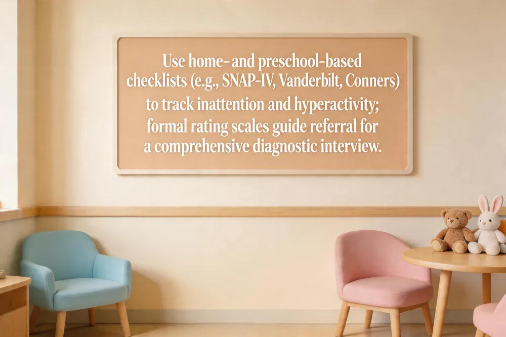 Early identification of ADHD relies on clear, practical checklists that families can use at home and in preschool settings. For a 4‑year‑old, watch for persistent inattention (careless mistakes, short attention span, not listening) and hyperactive‑impulsive signs (constant movement, inability to sit still, grabbing toys, difficulty waiting). These behaviors should appear in at least two settings for six months before a clinician recommends a formal rating scale such as the SNAP‑IV Preschool, Vanderbilt, or Conners Parent‑Teacher questionnaires.