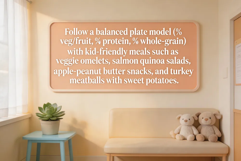 A kid‑friendly ADHD diet centers on protein‑rich foods—scrambled eggs, Greek yogurt, lean meats, beans—paired with complex, high‑fiber carbs like whole‑grain toast, oatmeal, or brown rice to keep blood‑sugar stable and support dopamine synthesis. Aim for a balanced plate at lunch and dinner: half vegetables or fruit, one‑quarter protein, and one‑quarter whole‑grain carbs. Simple, repeatable meals make this easy.